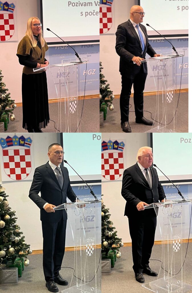 Nazočnima su se obratili i čestitali nadolazeće blagdane izaslanica gradonačelnika Grada Zagreba dr.sc. Lori Vidović, izaslanik ministra vanjskih i europskih poslova dr.sc. Domagoj Knežević, izaslanik Vlade RH i potpredsjednika Vlade RH i ministra obrane državni tajnik umirovljeni general Drago Matanović te izaslanik predsjednika Hrvatskog sabora zastupnik Josip Đakić. Domjenku je nazočio i izaslanik potpredsjednika Vlade i ministra hrvatskih branitelja savjetnik ministra umirovljeni general Ivan Pokaz te glavni inspektor obrane general-pukovnik Siniša Jurković. Svima skupa uz zahvalu na dolasku čestit Božić i sve najbolje u Novoj godini zaželio je predsjednik HGZ-a umirovljeni general Marinko Krešić.