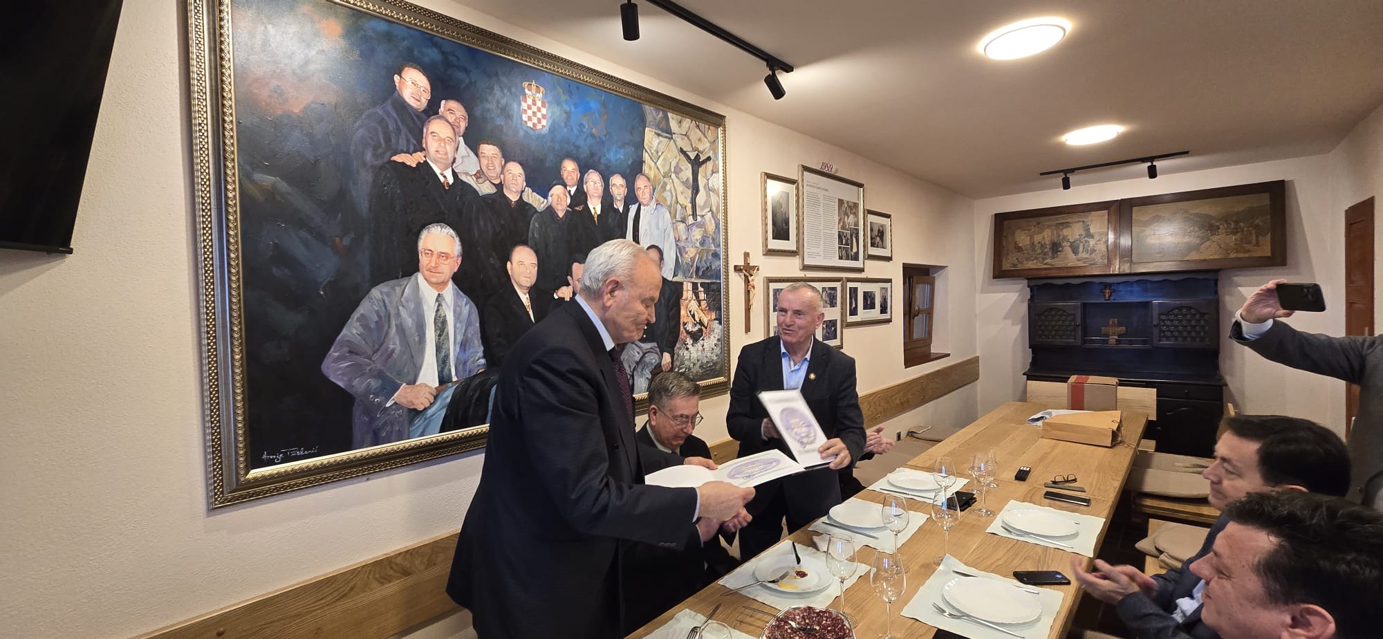 U prigodi posjete predsjednik HGZ-a umirovljeni general-bojnik Marinko Krešić uručio je gospodinu Anti Lediću dokument o prijamu u počasno članstvo HGZ-a.