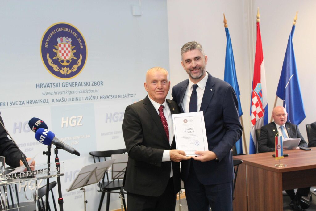 Predsjednik HGZ-a umirovljeni general Marinko Krešić nakon toga je uručio priznanja HGZ-a.